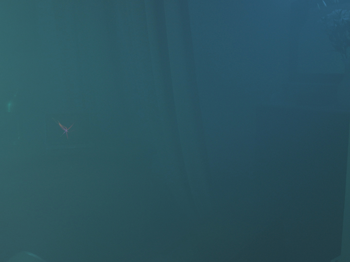 In an initially deserted room objects slowly begin to move; they are manipulated from the off-screen space, being pulled and dragged by strings, cables or the carpet.